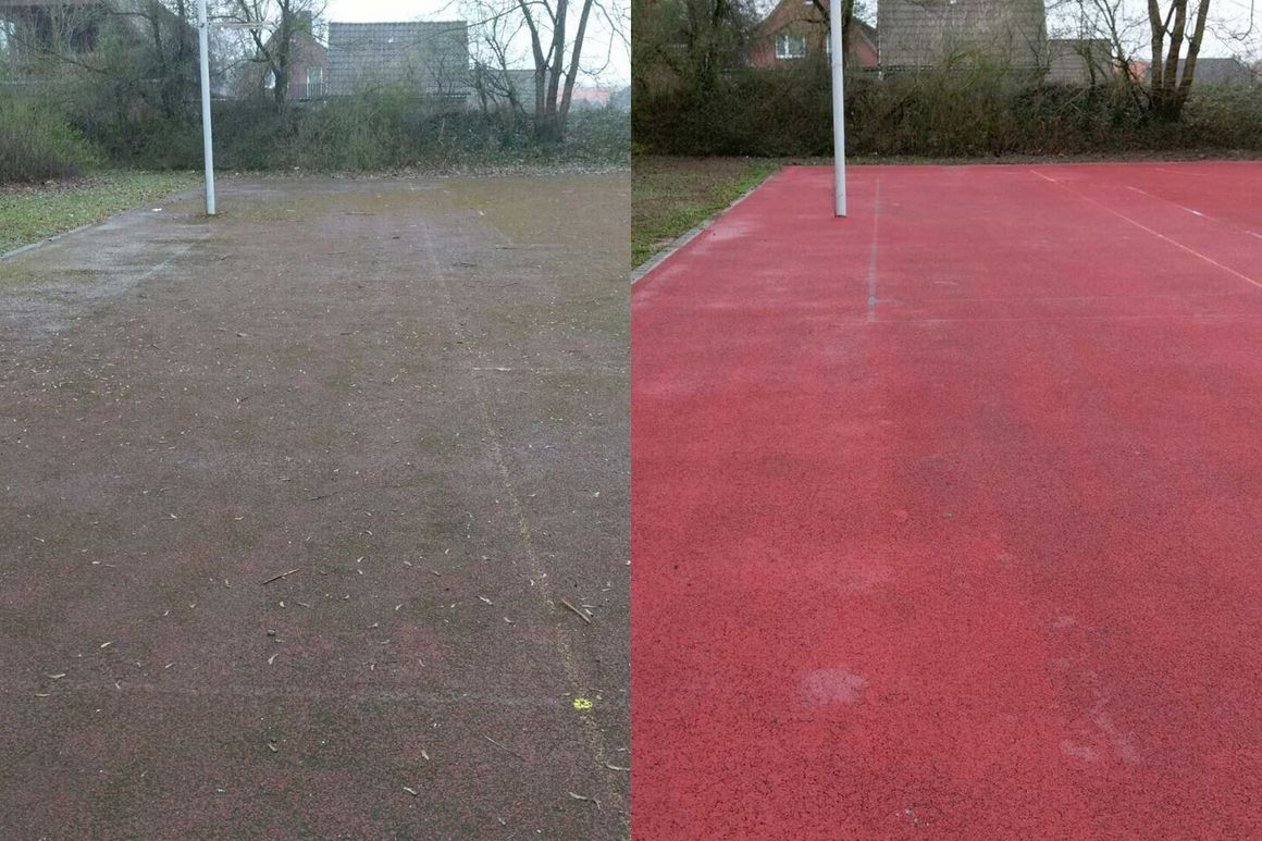 Ongeacht of er nu sprake is van zand, donkere en vette oppervlakken, verontreinigingen tot diep in de poriën, mos- of algenvorming, of gesloten poriën van de tartanbaan, de efficiëntie van ons procedé zal u ongetwijfeld overtuigen. U zult zien: U komt gewoon verder met de tartanbaan.